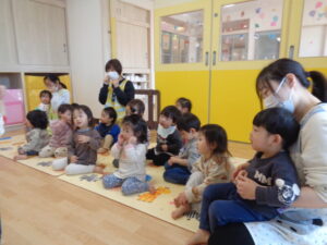 園長先生からお祝いのお話があり、みんなで「たんたんたんじょうび」の歌を歌いました🎉