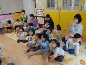 あけましておめでとうございます🎍新年になり、ベビー園も始まって子どもたちはとても元気に登園しています!今日、あけましておめでとうの会がありました。先生からお正月のお話も真剣に聞いていた子どもたち…鏡餅に1番興味を持ち、「見たことある~!」と話してくれたお友達もいました!