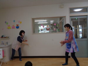 先生たちの羽根つきや駒を回す様子に大喜びで、「先生、頑張って~」と沢山応援してくれました✨
